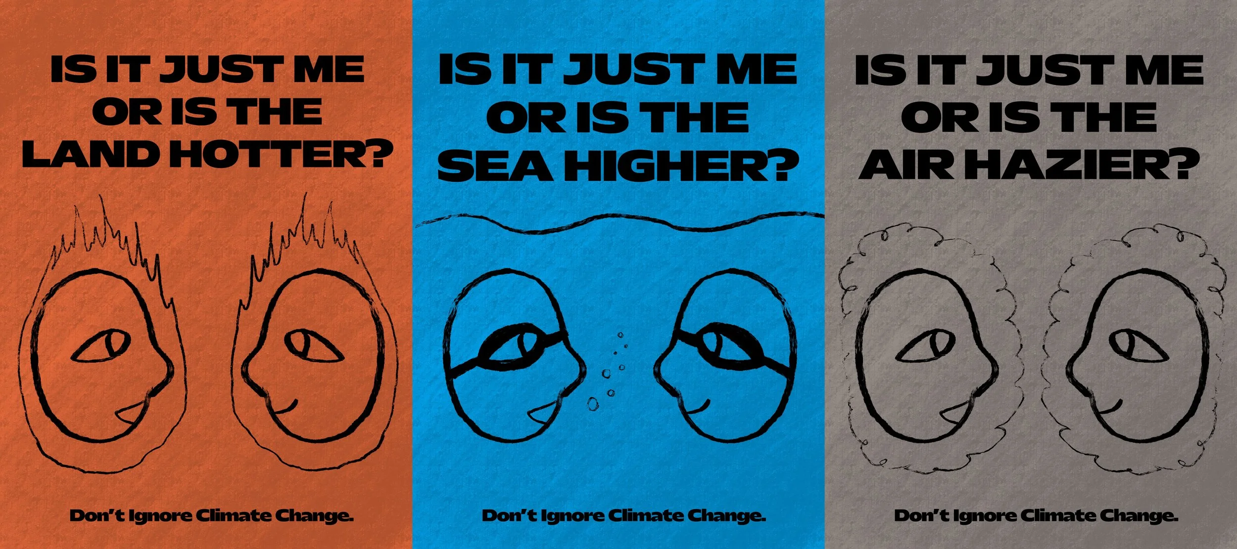 The challenge was to design a set of cohesive posters that bring attention to the pressing matter of climate change and emphasize the need for action. For my posters, I wanted to make a statement on general attitudes of apathy toward climate change. Many people are already aware of the climate crisis. Therefore, I wanted to address people who choose to ignore the issue and remain complacent.